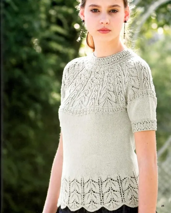Кофточка с ажурной кокеткой, вяжем спицами