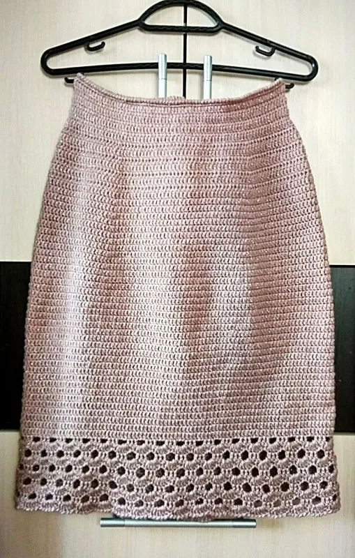 Авторская юбка "Пудровый Шик".Юбка "Пудровый шик"связана крючком. Юбка связана на заказ,модель разработана и придумана мной,в комплект к жакету "Пудровый шик".Эта модель будет очень хороша в любом цвете.Здесь использована однотонная пряжа с люрексом изысканного пудрового оттенка.