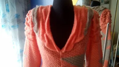 Очень красивый кардиган, модель оригинальная! Я сейчас тоже вяжу коралловый джемпер, у меня только оттенок чуть розовее и тоже хотела добавить кофейный оттенок под юбку.Модель у меня тоже будет своя, авторская, как свяжу- покажу, но у Вас просто шедевр, молодец!!!