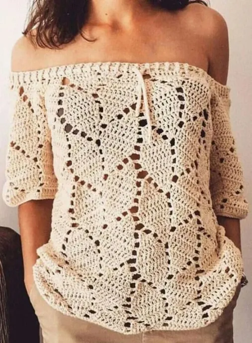 Узор "Крупные листья", вяжем крючком топ, платье, блузу