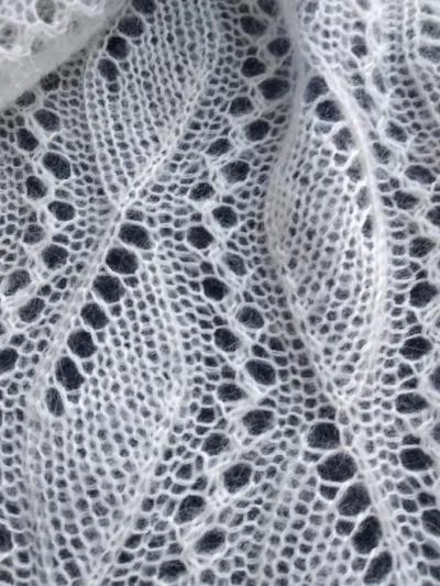 Состав пряжи : одна нить кид-мохер от + нить мериноса. При этом узор чуть плотнее, а значит палантин чуть тяжелее. Размеры 49см на 176 см. Весит ровно 100г