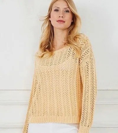 Вяжем ажурный свитер персикового цвета