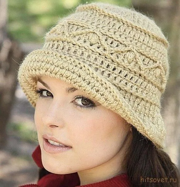 Вязаная шляпа3-й круговой ряд: связать 3 воздушный петли подъёма и 1 столбик с накидом в один и тот же промежуток между петлями основания, *1 столбик с накидом в следующий промежуток между столбиком с накидом и 2 столбика с накидом в следующий промежуток между столбиком с накидом (прибавление)*. Повторять от * до *, 1 столбик с накидом в последний промежуток, 1 соединительный столбик в 3-ю воздушную петлю подъёма и ещё 1 соединительный столбик в следующий промежуток = 27 столбиков с накидом.