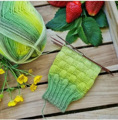 Вяжется только лицевыми и изнаночными петлями.