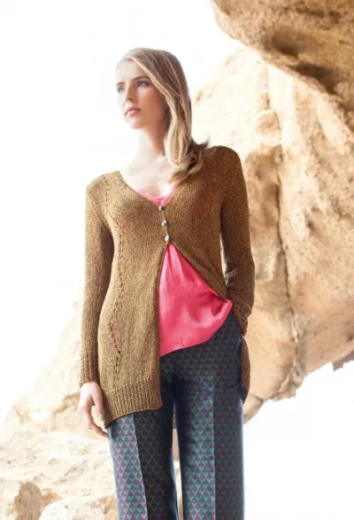 - 450 (500-550) г пряжи типа Lana Grossa Ombra верблюжьего/коричневого цвета Fb 2 (75% хлопок, 25% полиэстер, 120 м/50 г),