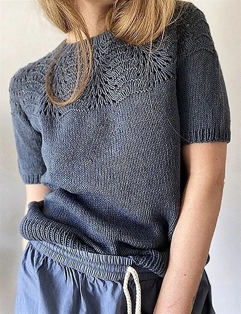 "Ажурный узор на кокетке вязать захватывающе и просто. Комбинация ажурного узора и изнаночной вязки выглядит очень красиво.