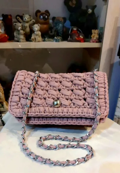 Сумочка связана из трикотажной пряжи по брендовой сумке из интернета