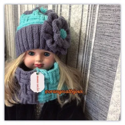Эта моделька из коллекции пользователя @orange_cat knitting в Инстаграм, думаю, что авторская. Но там есть процессы создания разных работ в фотографиях, если посмотреть фото, то можно понять как вязать и шапку, и снуд