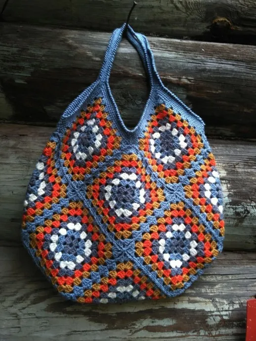 Решила собрать из квадратов сумку, тем более что давно хотела. Пряжа, из которой связаны квадраты, не подходит для сумок, но я сделала из плотной ткани подклад. Пряжа от Пехорки "Бисерная" . 100%акрил.