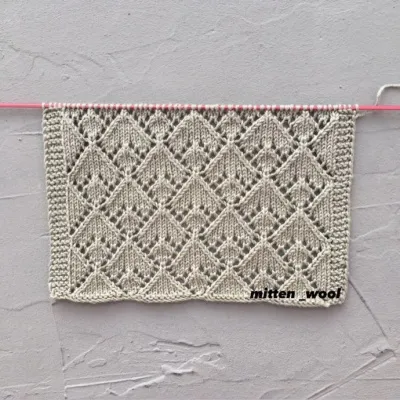 Начинаем вязать с 1-й кром.п. и петель перед раппортом, повторяем петли раппорта, закончить петлями после раппорта и 1 кром. п.