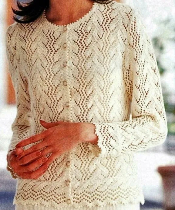 Я вяжу крючком, но пора уже взать спицами, хочу такую кофточку себе :)