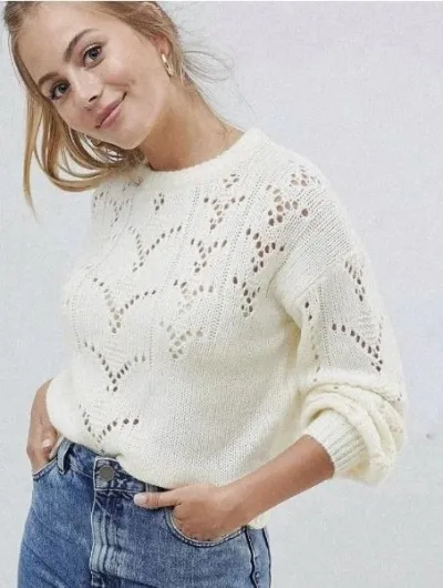 Белый джемпер спицами