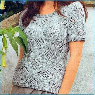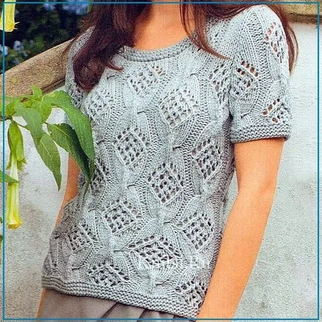 Вам потребуется 450/550 грамм пряжи (например, 65 % хлопка, 35 % акрила, 140 м/100 грамм); спицы № 7