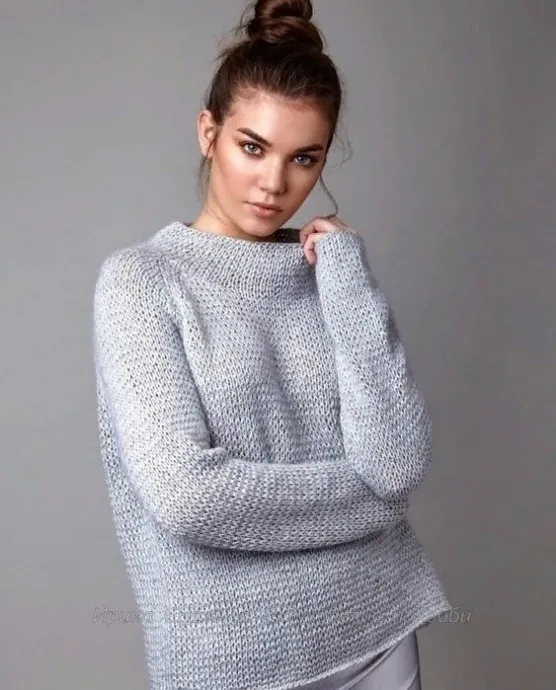 ПРИМЕЧАНИЕ: Эту же модель можно вязать только из кид-мохера и тоже в две нити. Узор с чередованием спиц хорошо и красиво ложится и в других простых видах пряжи. Иными словами — этот простой узор подходит ко всем видам пряжи! Даже для хлопка.