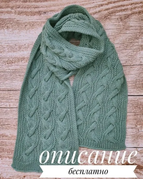 Вязать нужную длину шарфа. Перейти на спицы меньше основных и связать для планки 3 см резинкой 1*1.