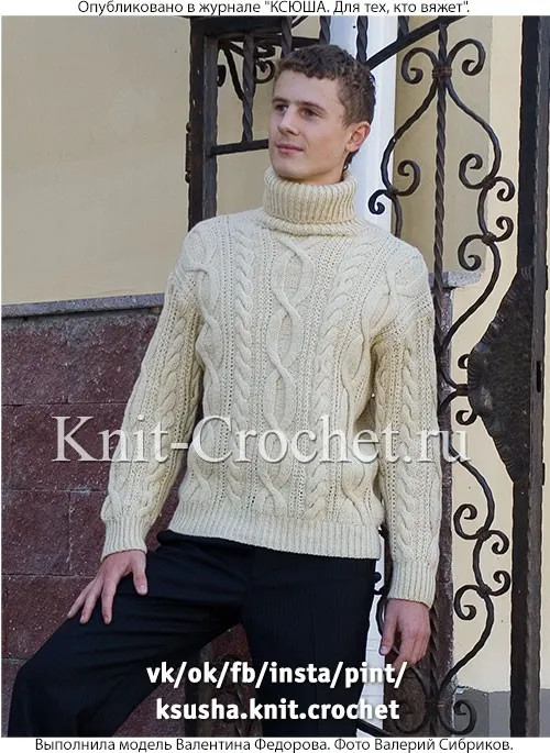 Свитер спицами для мужчин.
