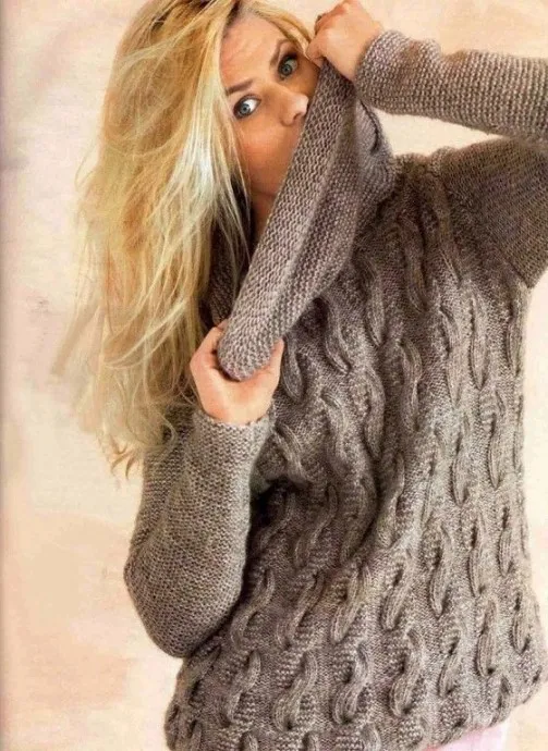 Пуловер узором с большим воротником, узор "Коса"