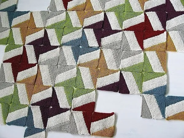 Связав необходимое количество квадратов, сложите рисунок, который вам подходит и аккуратно сшейте их между собой. После сборки, одеяло необходимо обвязать. Поднимите петли по всему периметру и свяжите несколько рядов платочной вязкой. Или выберите любой другой способ обработки края.