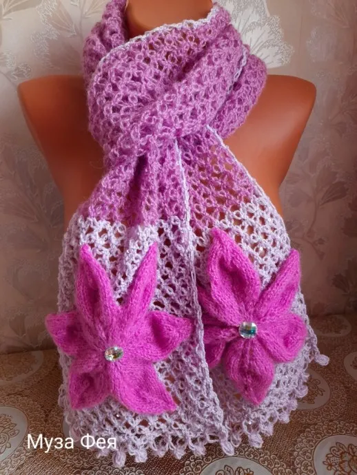 Шарфик "Амариллис", крючок+спицы