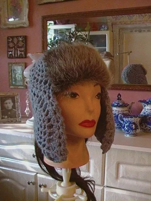 В конце зимы вдруг решила под свои серые нутрии связать шапку-ушанку. Пока вязала, вспомнила о клочках нутрии от капюшона, который перешила в воротник. Клочок пригодился.