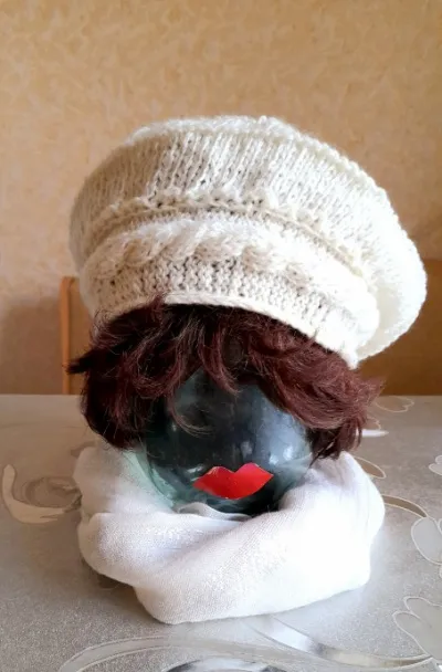 Белый берет спицами.