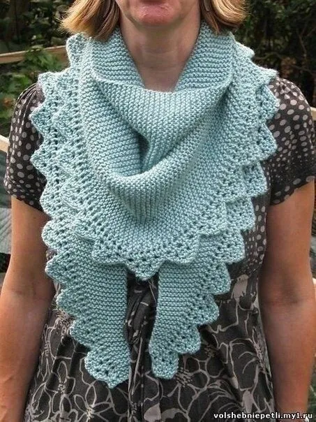 Маленькая треугольная шаль-шарф вяжется поперек, начиная с угла. Ажурная кайма вяжется одновременно с шалью.
