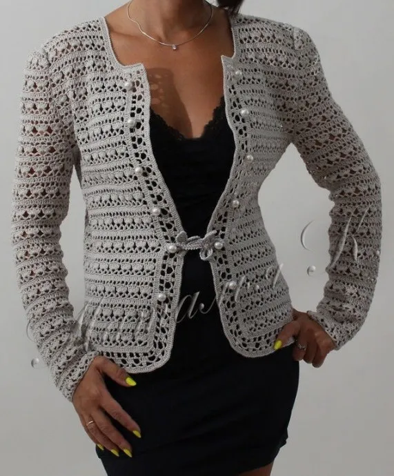 Жакет прекрасен! Лёгкий, изящный. Без вычурных узоров, которые, на мой взгляд, зачастую удешевляют изделие. Очень благородного цвета и с со вкусом подобранной фурнитурой. И с этой занятной петелькой, словно бы ставящей точку в похвале мастеру, создавшему такую прелесть. Восторг, да и только!