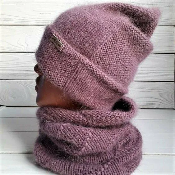 Шапка бини простым узором спицами