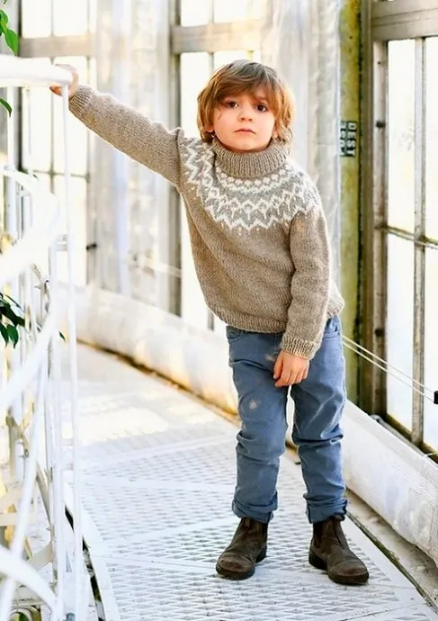 Свитер типа лопапейса (Исландский свитер), схема найдена на просторах интернета. На мой вкус, подойдет как мальчикам, так и девочкам.