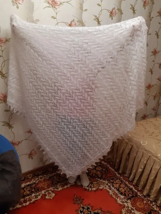 Шаль, 100%козий пух, размер 1,6м на 1,6м. Основа лавсан N35, Полностью ручная работа!