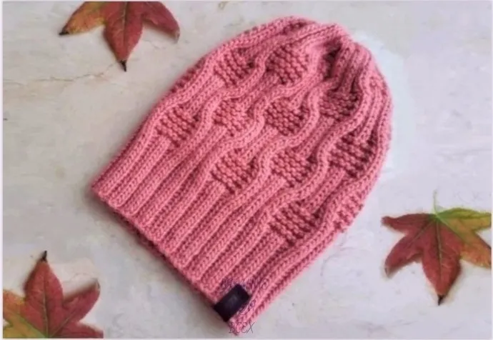 2. Стильнaя шaпочкa, cвязaннaя интeрecным узором.