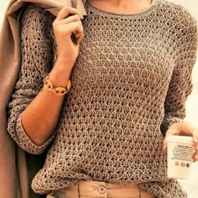 Эту модель можно связать и из хлопка, и из мериноса, и из акрила, смотреться будет шикарно в любом варианте. А если добавить пайетки, то кофточка превратится в прекрасный вечерний наряд.