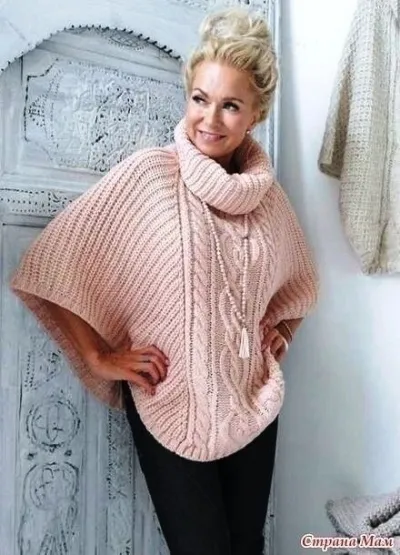 Теплое пончо спицами