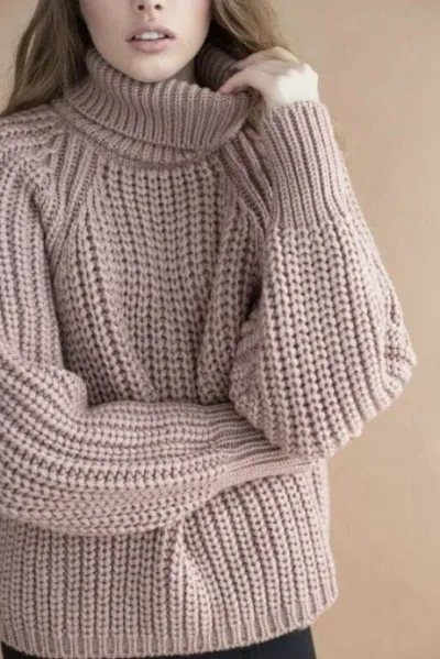 Модель оверсайз, реглан, воротник - широкая стойка, свитер связан вкруговую снизу вверх.