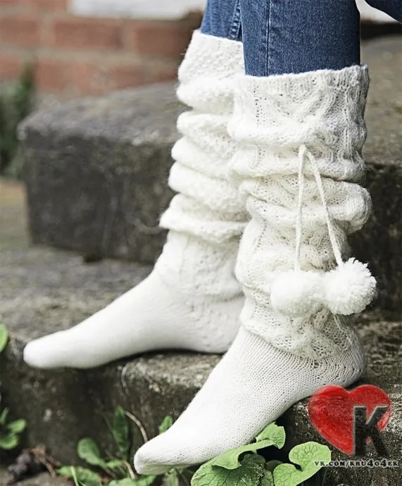 Гольфы вяжутся сверху вниз узором из «кос».