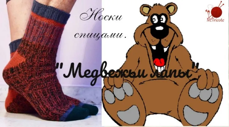 Мужские носки "Медвежьи лапы". Спицами.