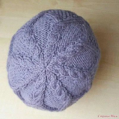 Шапка вяжется по кругу, без швов, снизу вверх. Вязание начинается резинкой, после прибавления петель в установочном ряду вяжется основная часть и в конце выполняются убавки для формирования макушки.