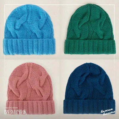 Вязание идет снизу вверх. Набор петель — стандартный. Число раппортов по горизонтали — 4. Правда, в высоту на этот раз потребуется примерно 1,5-2.