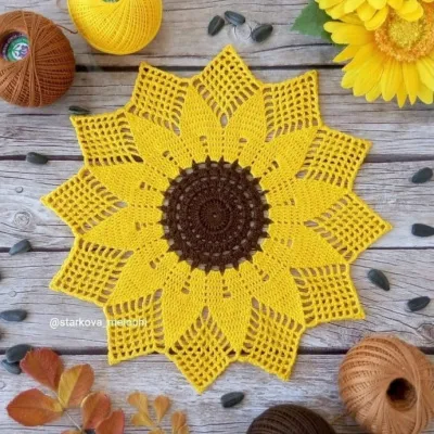 Салфетка "Подсолнух", вяжем крючком