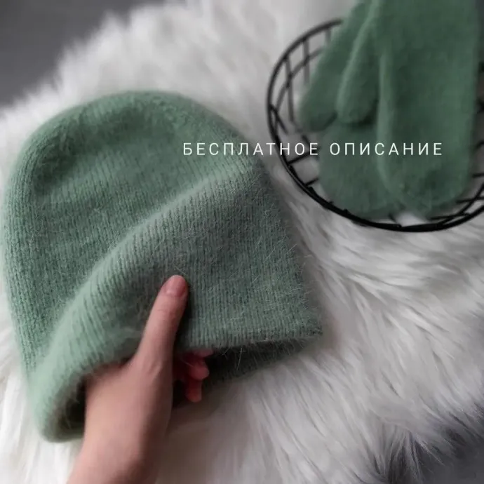 Теплая двойная шапка-бини с удлинённой макушкой спицами