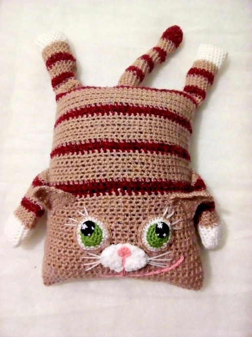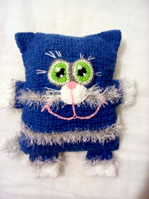 Кто-то вяжет кукол, кто-то - зайцев, медвежат, собачек и т.д. Я вяжу подушки-игрушки в образе котов. Решила показать некоторые из них. Вязать подушки начала примерно два года назад.