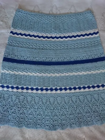 У меня в мобильной версии почему-то нет на главном экране этого совместника, я его нахожу только по комментариям. Вот хочу поделиться своей работой. Начала её вязать когда девочки уже были на четвёртом этапе. Пришлось изменить низ юбки, по рисунку вязала получился рюш, мне не понравилось. Поэтому вот так.