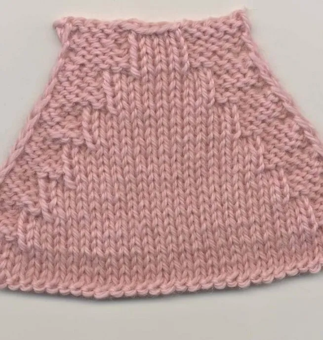 5 ряд – в начале детали провязать 3 вместе изнаночной, 4изнаночной, далее лицевой вязкой. Когда останется 7 петель, 4 из них изнаночной, остальные 3 вместе изнаночной.