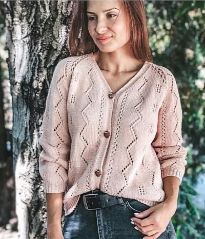 Узор "зигзаг" спицами в жакете с рукавом реглан