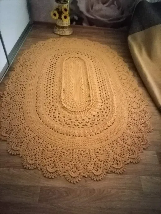 Шикарный ковёр получился!!! Пряжи крючок ест много))