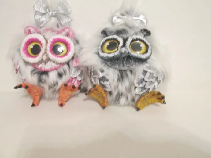 Две совы из одного кусочка меха по МК Анастасии Астафьевой.