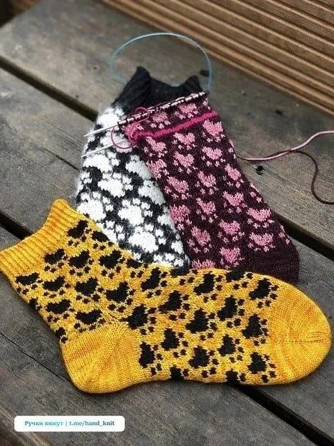 Носки с "кошачьим" жаккардом, вяжем спицами