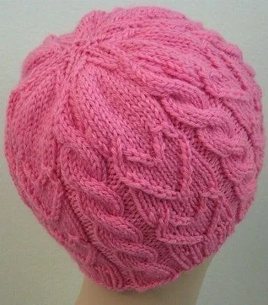 Шапочка спицами узором «косы и сердечки»