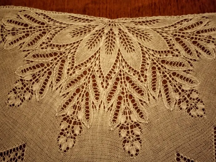 Очень красивая шаль! Мне цвет понравился и при утреннем свете и при дневном.