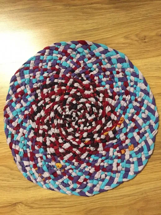 Сплела новый коврик, пытаюсь поймать принцип цветорасположения, хотя, как мне говорят, что в этом их прелесть, ведь из остатков и тряпочек. Муж назвал «Вырви глаза».